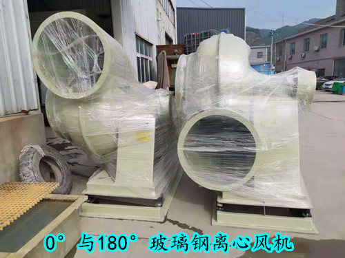 相較于0°風(fēng)機,方向為180°的風(fēng)機使用更多,兩者的風(fēng)機出風(fēng)口都是在水平方向,區(qū)別是180°方向的風(fēng)機出風(fēng)口在水平之上,而0°方向的風(fēng)機出風(fēng)口在水平線之下。下面是0°與180°玻璃鋼離心風(fēng)機圖展示。
