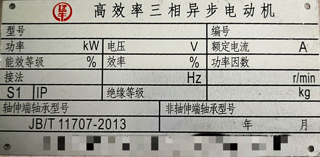 參照上圖中的電動(dòng)機(jī)銘牌,在上面會(huì)詳細(xì)標(biāo)準(zhǔn)電動(dòng)機(jī)的型號(hào)規(guī)格、生產(chǎn)編號(hào)、功率、電壓、額定電流、能效等級(jí)、效率值、絕緣等級(jí)、額定轉(zhuǎn)速、重量、出廠編號(hào)、生產(chǎn)日期等。